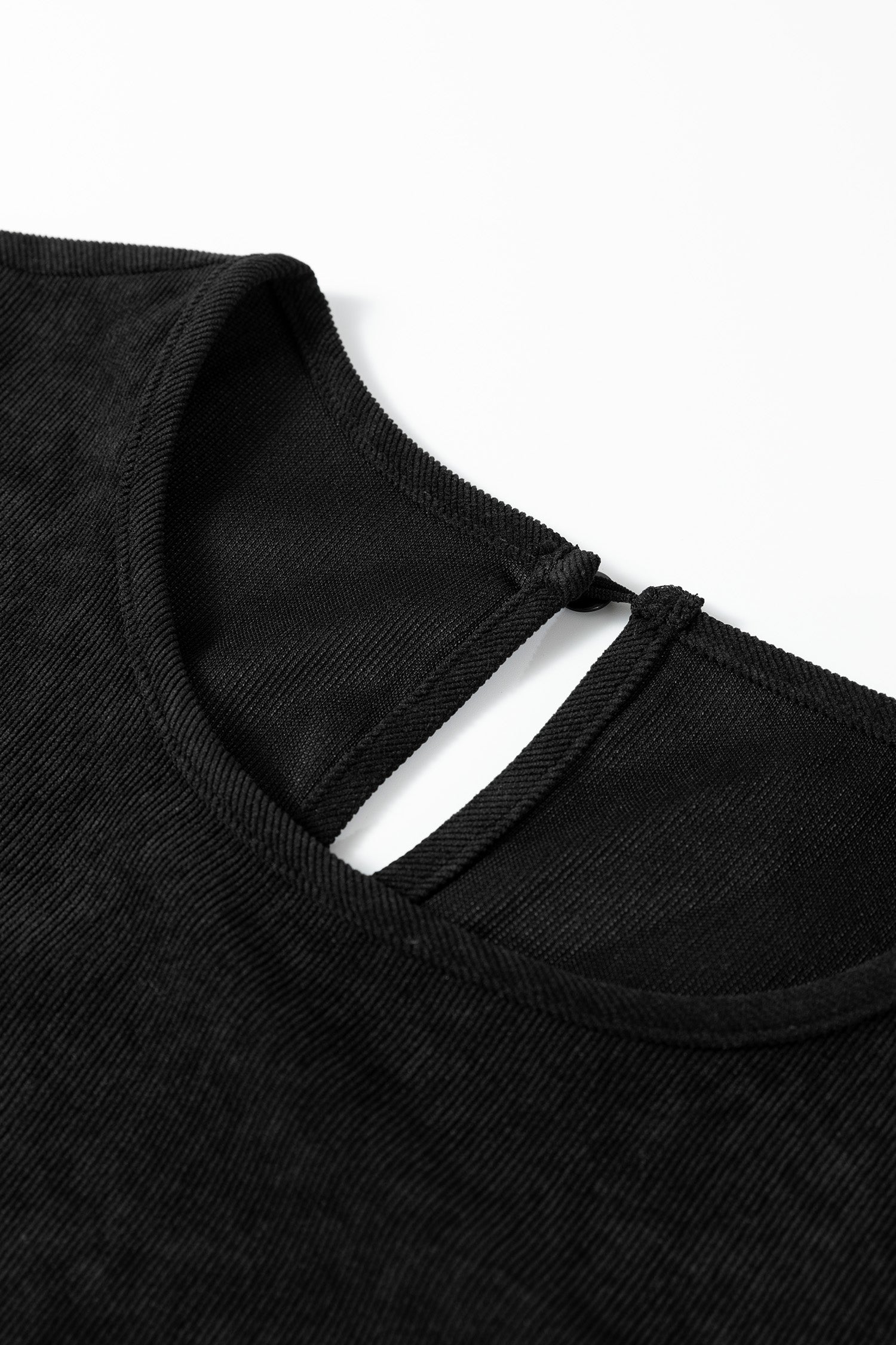 This long sleeve dress has a round neck and a button keyhole back.