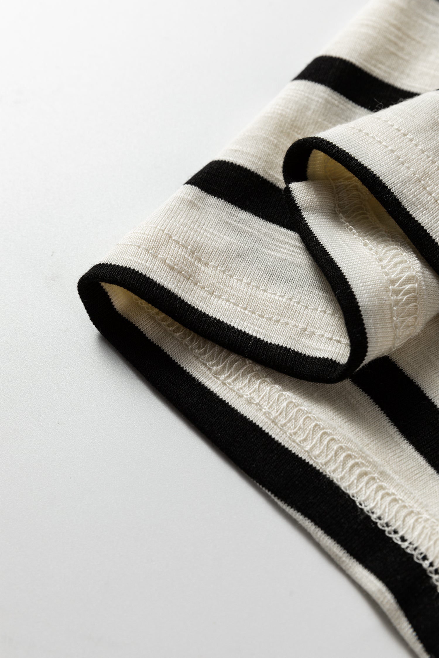 Black Stripe Ribbed Trim Button Cuff Long Sleeve Top Midi Skirt 2pcs Outfit