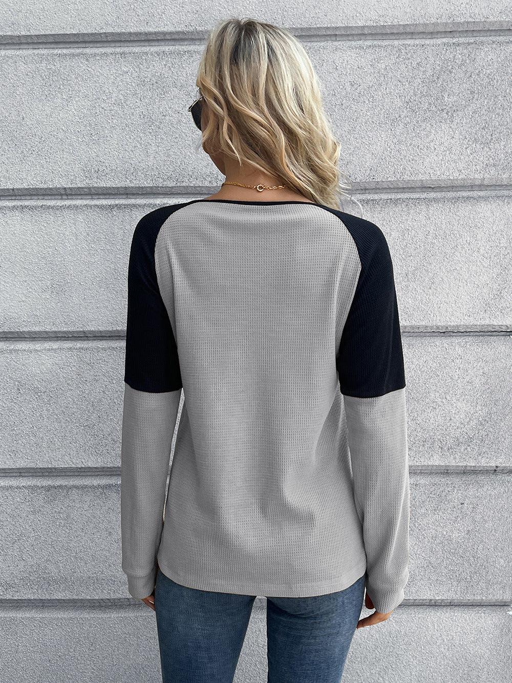 Contrast Buttoned Round Neck Raglan Sleeve Top