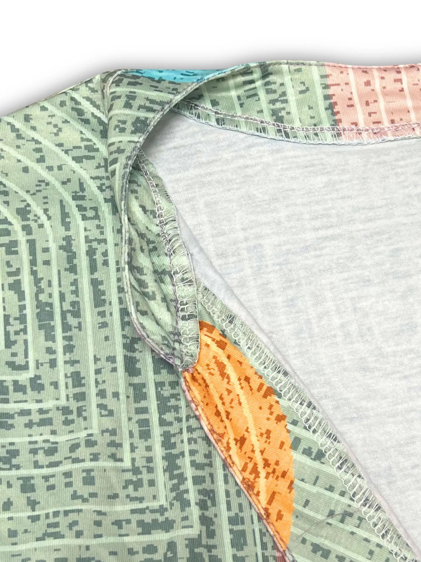 Geometric V-Neck Short Sleeve Button-Front Dress