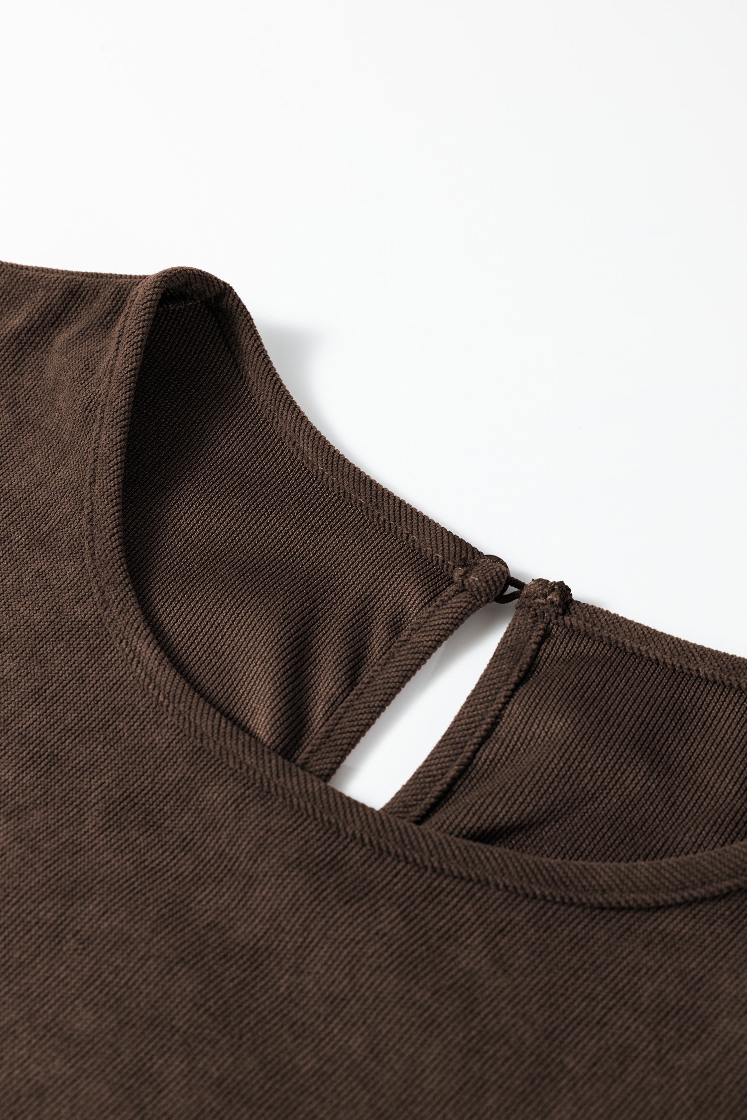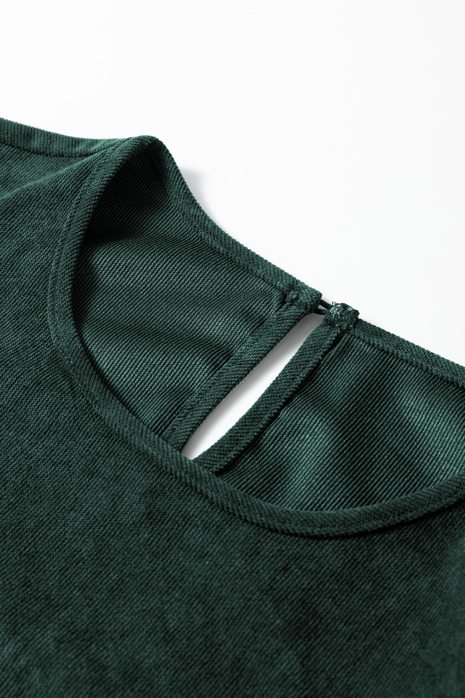 This long sleeve dress has a round neck and a button keyhole back.