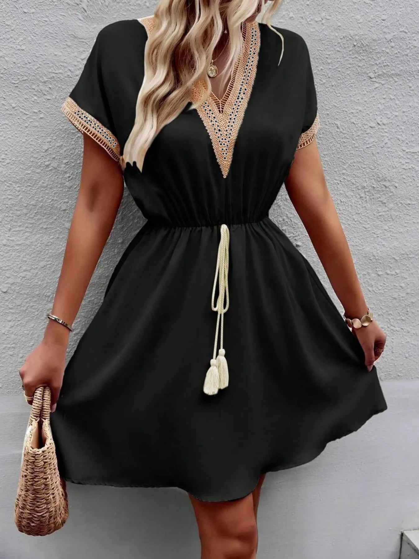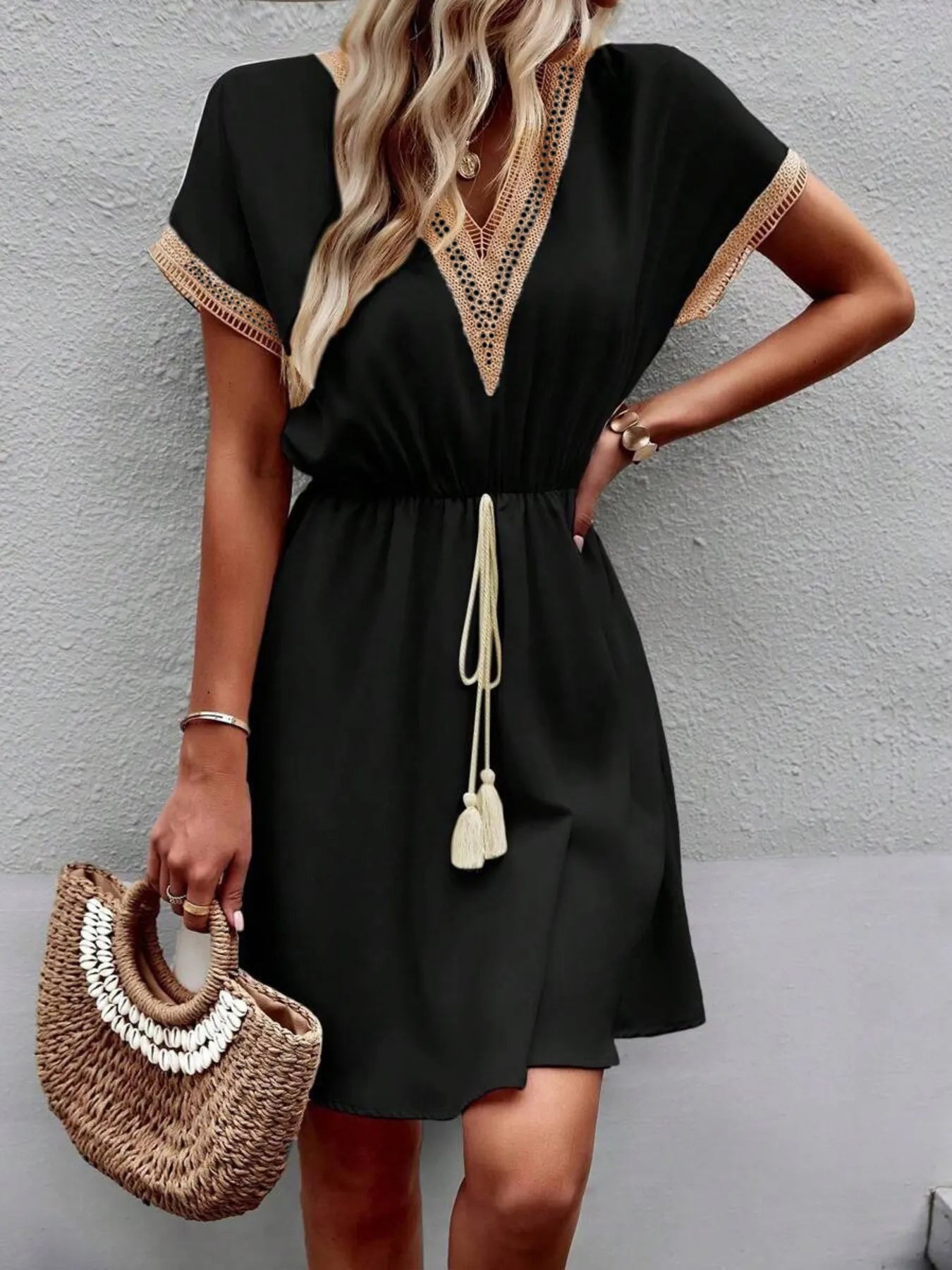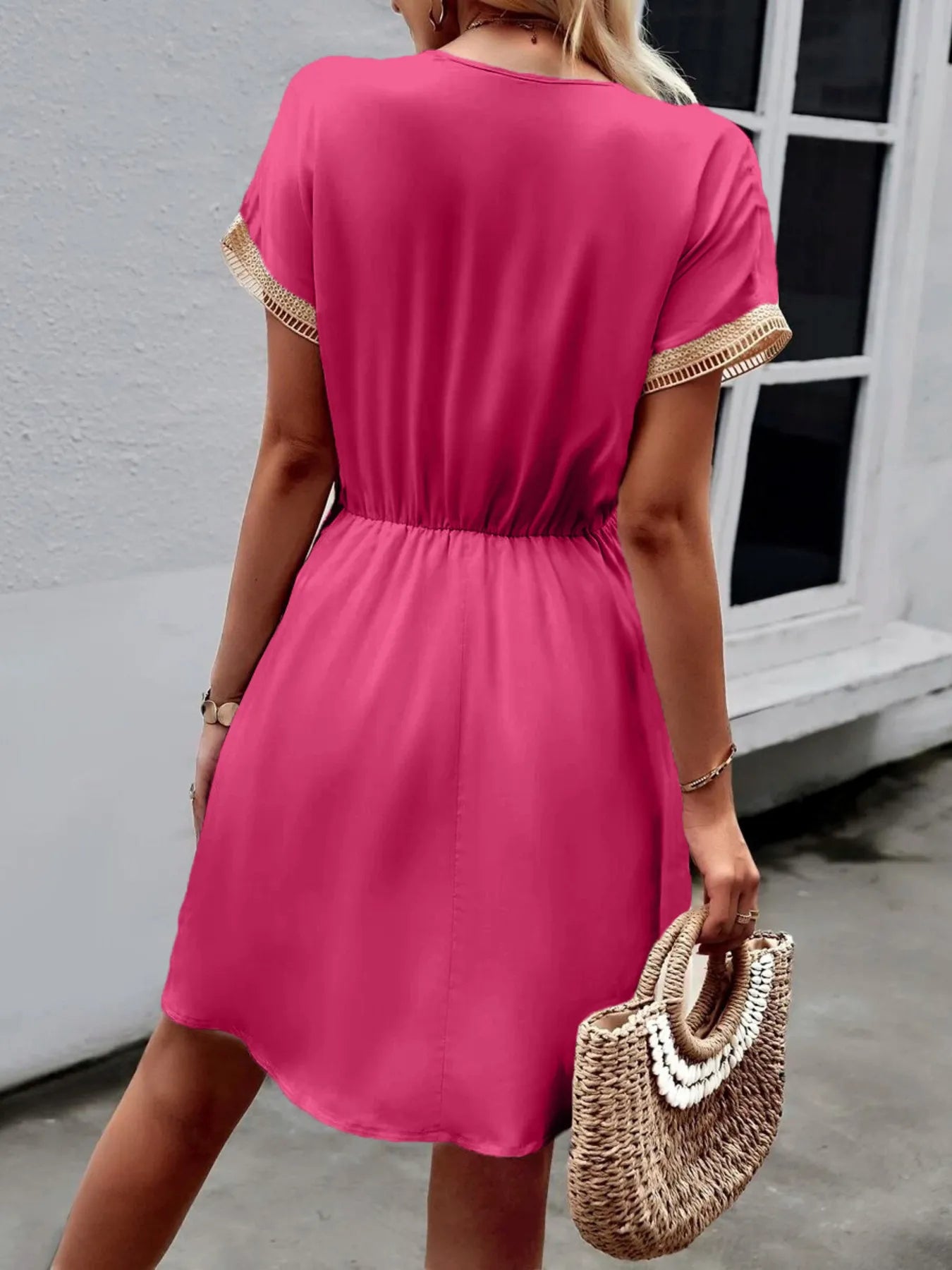 V-Neck Short Sleeve Mini Dress