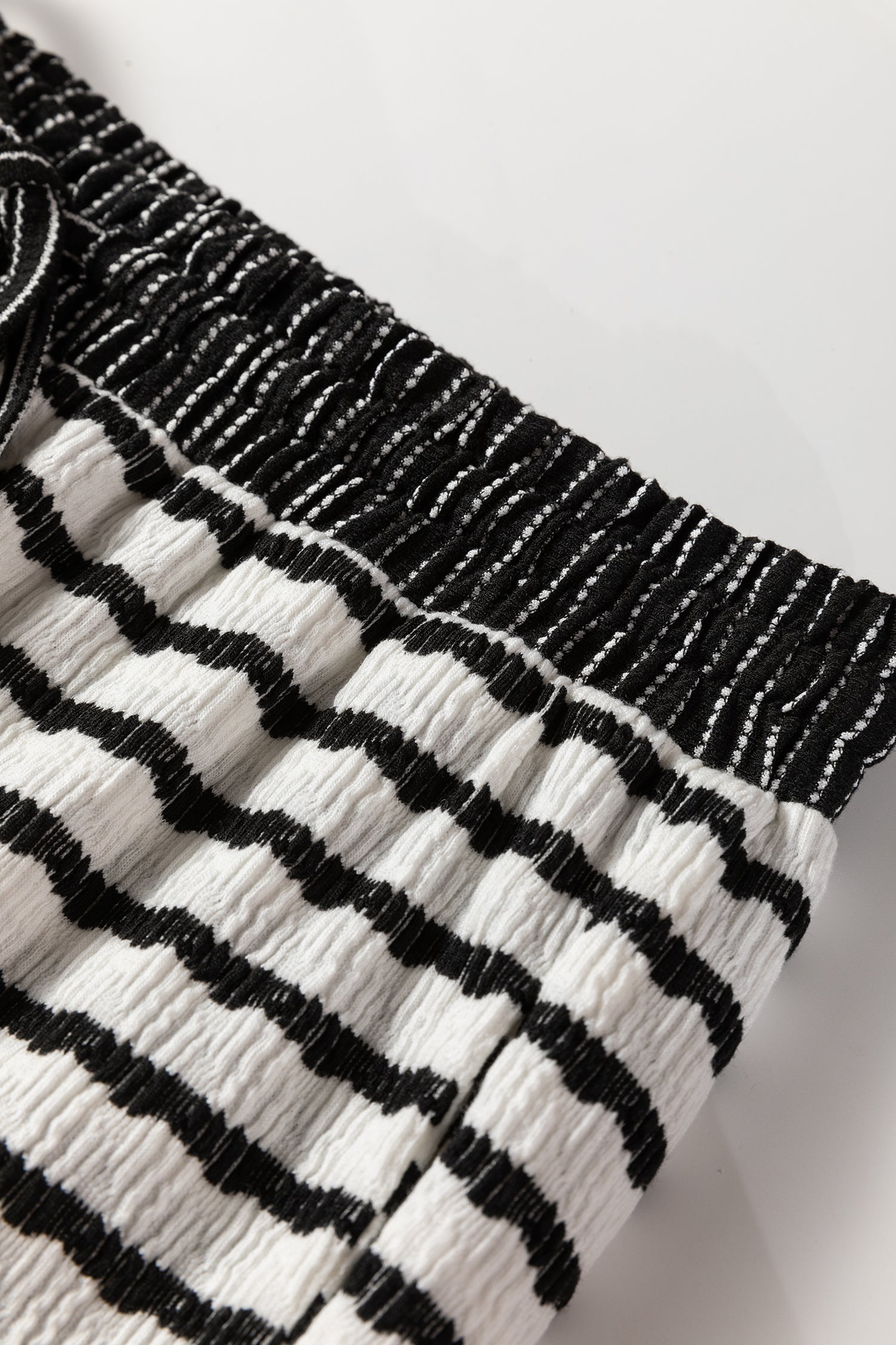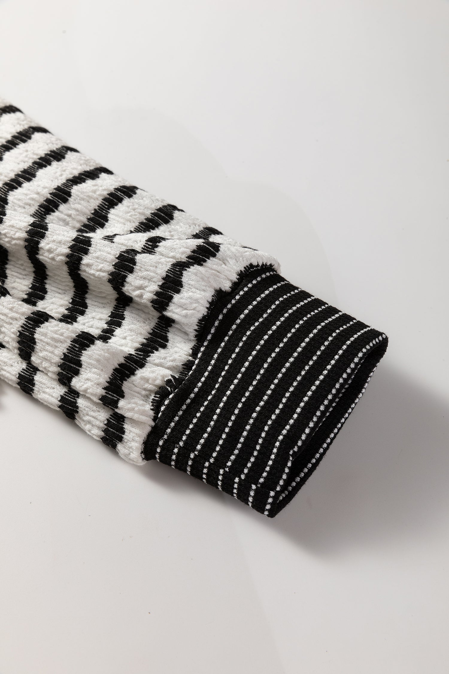 White Stripe Collared Pullover Top and Drawstring Pant Set