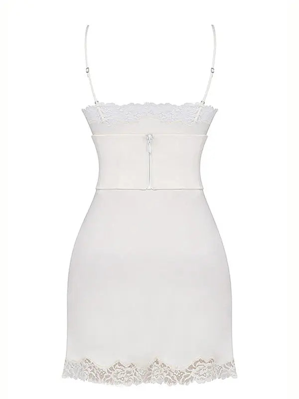 Blue Zone Planet | Ava's Satin Lace Stitching V-Neck Strapless Backless Dress