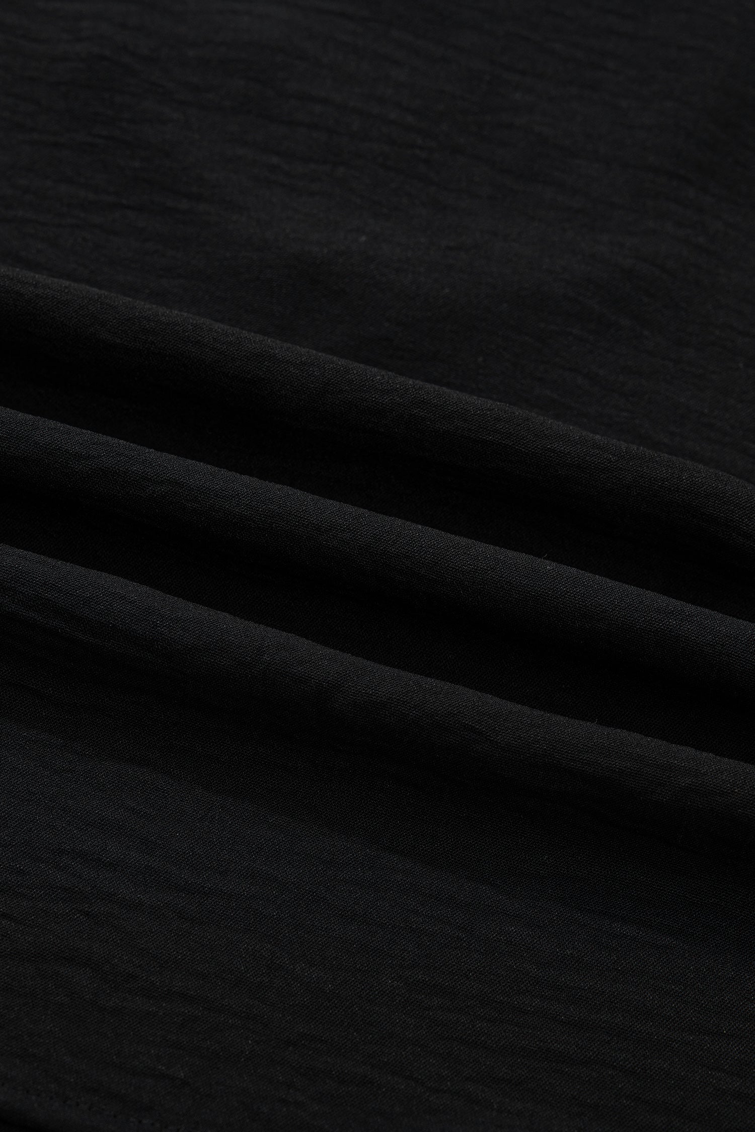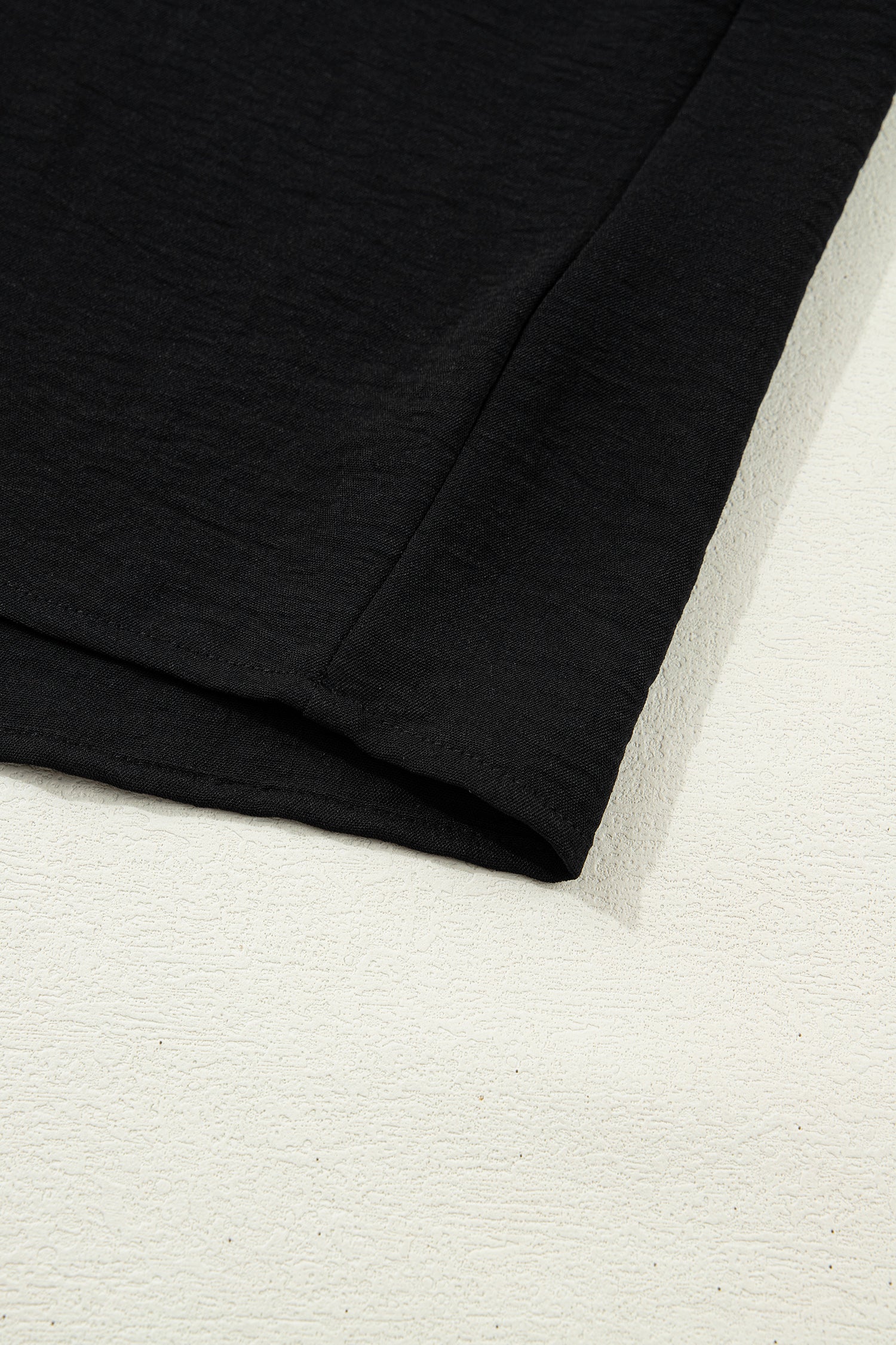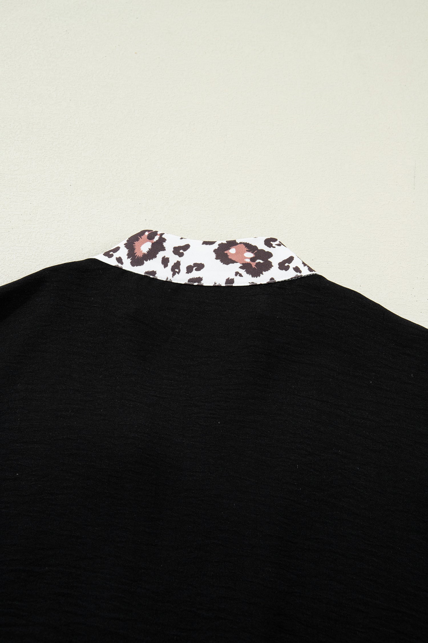 Black Dolman Half Sleeve Leopard Patchwork Trim V Neck Blouse