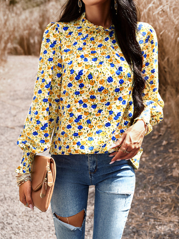 Blue Zone Planet | Temperament commuting lantern sleeve printed long-sleeved top