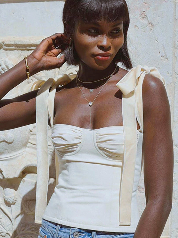 Blue Zone Planet | Knitted Strap Bow Camisole Babes Halter Top