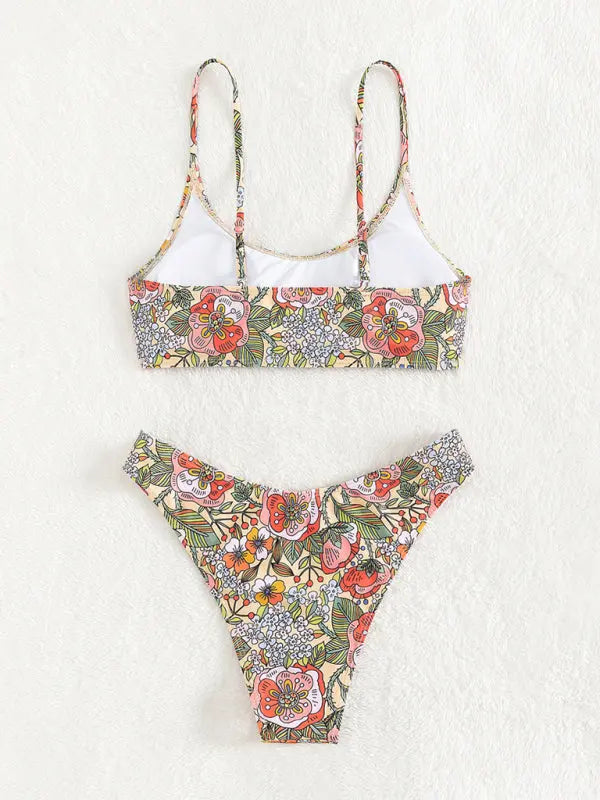A printed pattern embellishes this bikini. Holiday retro prints can be of various styles, adding a sense of vitality and style. It allows you to show off your retro elegance and become the center of fashion. Whether you're sunbathing with friends or strolling on the beach, this bikini will make you exude confidence and glamour.