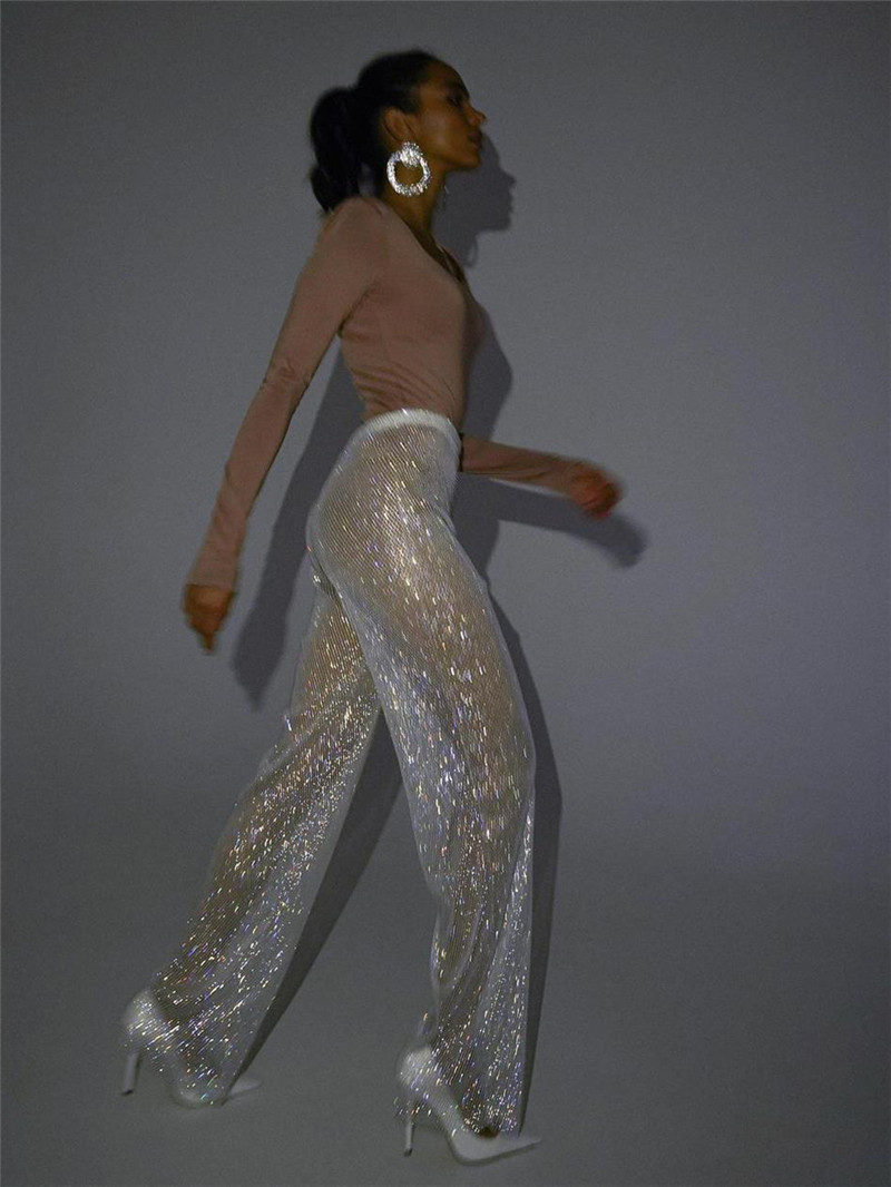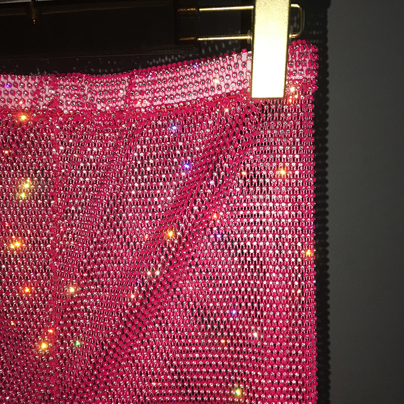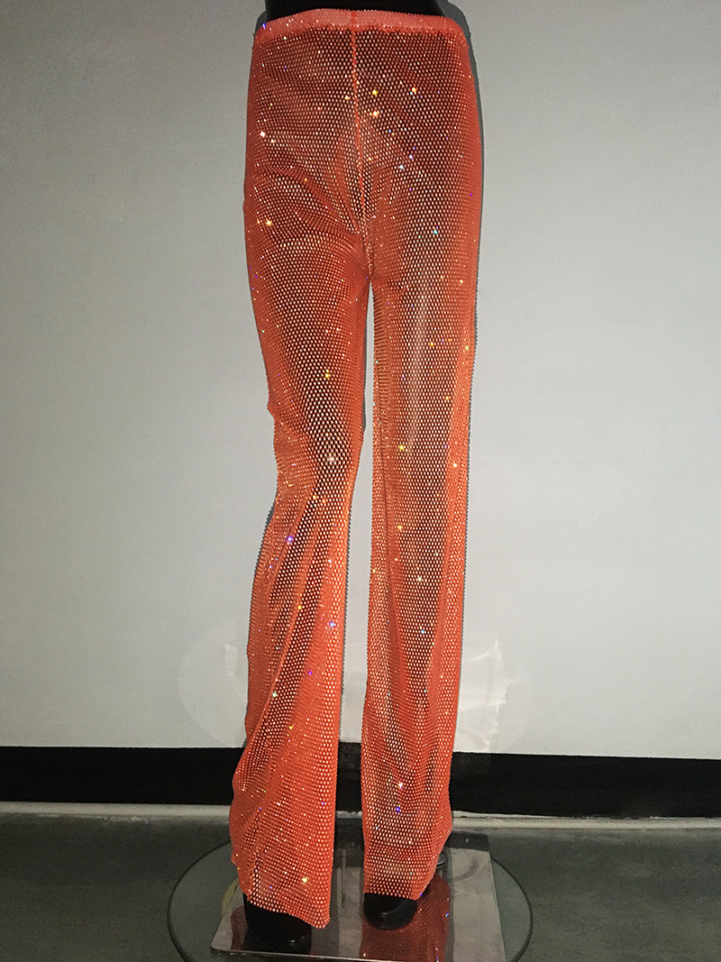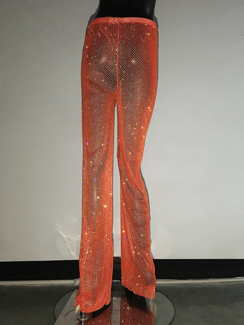 Our Rhinestone Fishnet Trousers are an ideal addition to any outfit. These Mesh Diamond Fishnet Pants are adorned with stunning rhinestones, adding glamour to any look. Embrace the sparkle with our statement-making trousers.