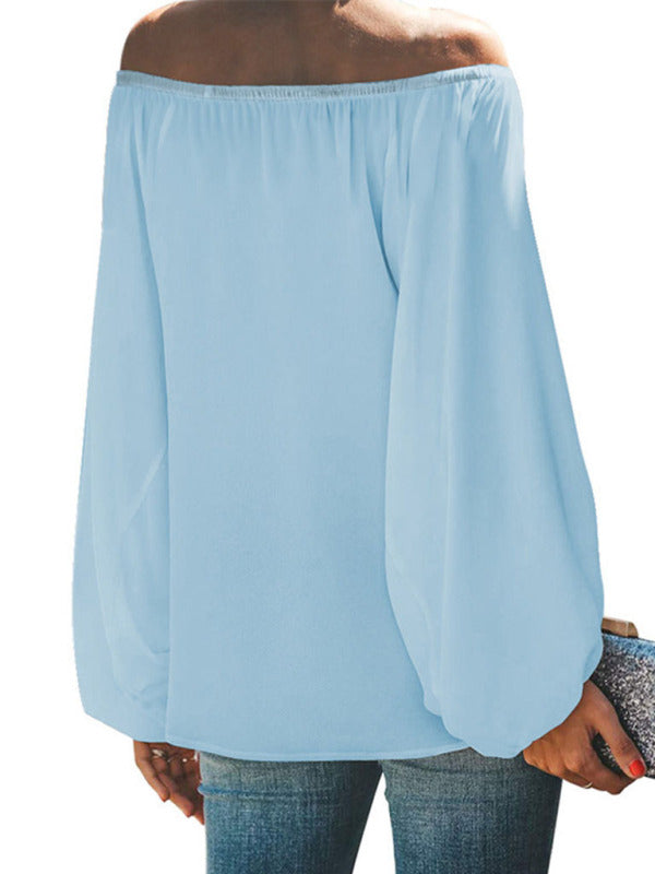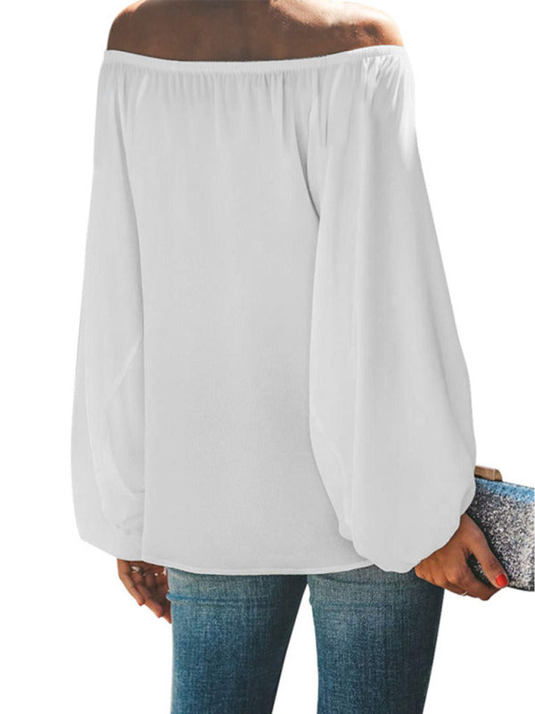 Off-Shoulder Solid Color Simple Lantern Sleeve Loose Long-Sleeved Top
