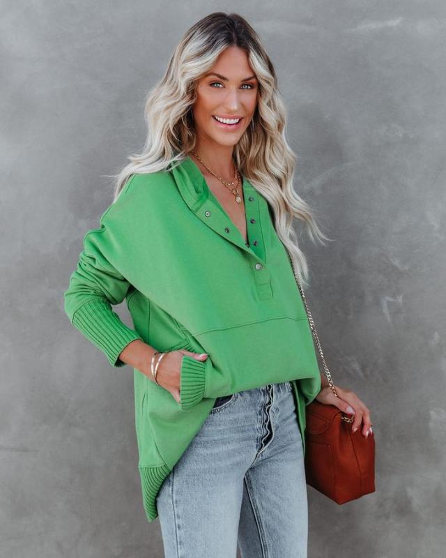 Blue Zone Planet | V-Neck Hooded Bat Sleeve Sweatshirt