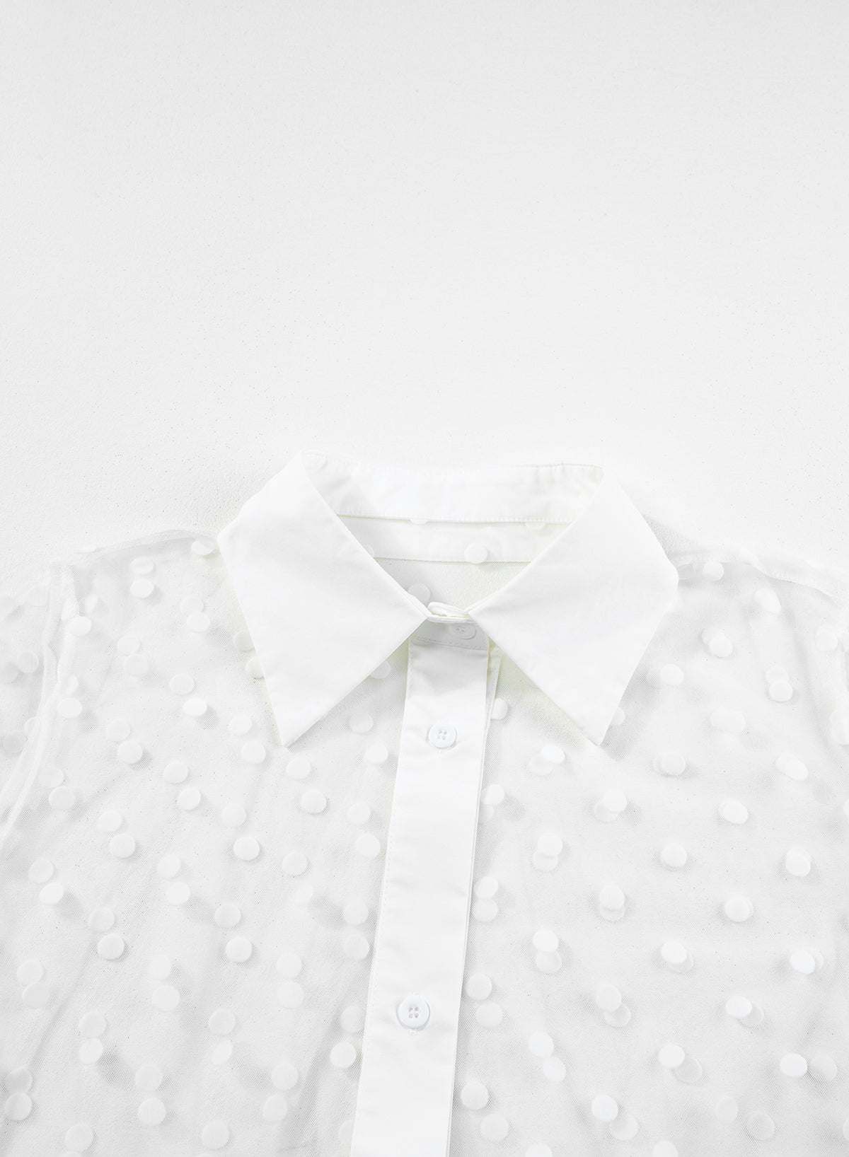 White Polka Dot Print Collared Buttoned Mesh Duster Kimono